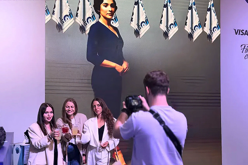 An AI-powered installation was developed to bring Sonia Delaunay’s image and design motifs to life on a large display. An AR mirror integrated with Visa payment technology enabled visitors to activate personalized scenarios by tapping a card, generating a custom fashion postcard in real time that could be printed instantly. The solution combined AI, interactive displays, sensor technologies, and real-time content generation.
