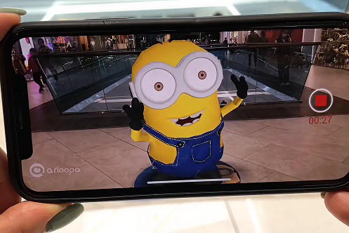 A creative concept and songs were developed for each character. 3D characters (Minion, Booza, SpongeBob) were created and animated with dance movements, with professional voice-over. The entire quest is programmed using augmented reality technology and integrated into the shopping mall space.